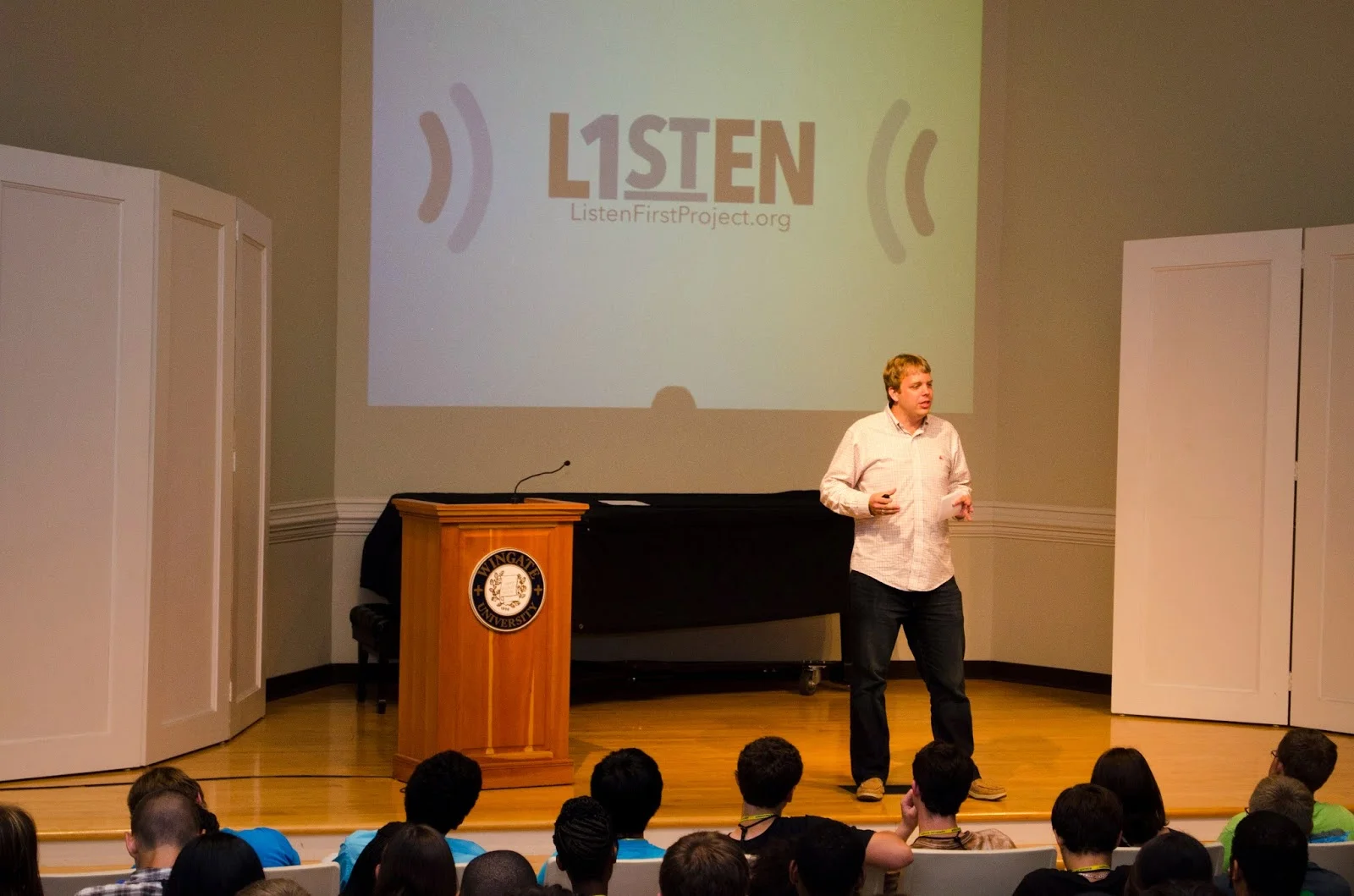 Listen First Project has been honored to appear at many events across the country: leadership conferences, middle school, high school, and college campuses, workplaces, political round tables, a Congressional Summit, New York City's Central Park, Facebook Live and more. We'd love to provide an engaging, educational, and inspirational Listen First Event for your audience!